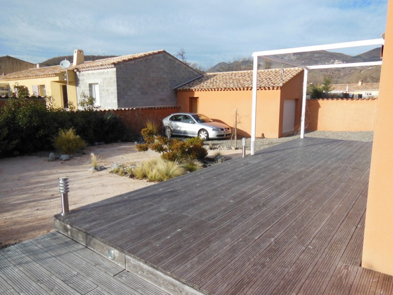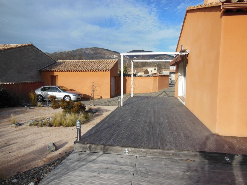 DIgne les bains, Villa de plain-pied de 111 m2, construite en 2009. Elle comporte un superbe séjour de 56 m2, incluant une cuisine ouverte très équipée, 1 chambre, une salle d'eau-wc et douche à l'italienne et une autre chambre parentale avec sa salle d'eau-wc privée et dressing personnel, puis, attenant à la cuisine un cellier de 7m2, chauffage au sol pompe à chaleur, climatisation reversible, terrasse bois de 80m2 entourant la villa au sud et ouest, garage de 21m2.Prestations générales de très bonne qualité. L'ensemble est édifié sur un terrain de 613m2 et se situe à 2 kms du centre ville, donc au calme . Contact : Gabriel RAYBAUD 06 13 55 70 30 ou par mail g.raybaud@prestige-immo.fr