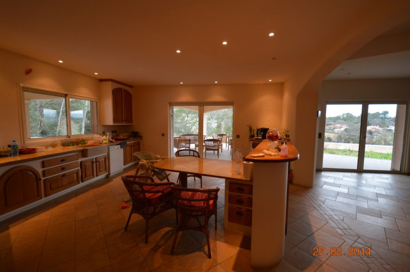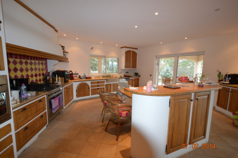 le thoronet, Maison d'exception de 300 m² habitable entourée de vastes terrasses sur un terrain de 7000 m². Cette demeure aux prestations haut de gamme est composée au rdc : d'un hall d'entrée, un salon séjour cheminée d'environ 105m², une cuisine ouverte équipée et aménagée de 40m², un cellier, une laverie, et une chambre parentale d'environ 40m² avec balnéo double lavabos, et wc indépendant. Au premier étage, deux chambres d'environ 20m², chacune ayant sa salle d'eau indépendante avec douche à l'italienne et wc. Cette maison est équipée d'un chauffage au sol alimenté par pompes à chaleur, et climatisation revèrsible. Construite en monomur, son sous sol d'environ 400m² est bâti en parpaings. Piscine de 10 par 5 et son pool house. Proche de l'autoroute Nice Aix Toulon, sans aucune nuisances bruyantes, au calme absolu, dans un environnement de campagne, et en position dominante, elle offre une vue panoramique sur les collines environnantes. Contact : Jean-Pierre Hoffmann tél 06 77 50 10 26 ou 04 94 04 72 29.